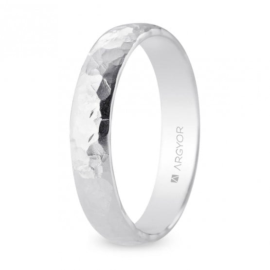 Alianza de boda de media caña con una anchura de 3,5 mm y acabado artesanal martellato fino. Esta alianza artesanal de la colección Organic está disponible en oro blanco de 18k.El saber hacer de nuestros maestros joyeros unido al diseño orgánico inspirado en la naturaleza para crear unas alianzas únicas como vuestro amor.