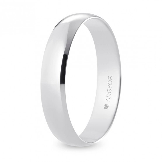 Alianza de boda clásica de media caña realizada en oro blanco de 9 y 18 quilates e interior confort. Destaca su anchura de 4,5 mm y su exclusivo acabado pulido brillante. Una joya que te acompañará durante los momentos más importantes de tu vida.Esta alianza forma parte del configurador de alianzas clásicas de Argyor.