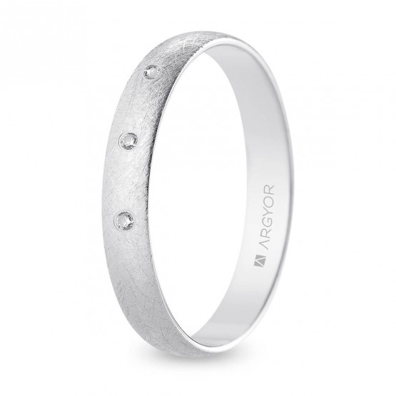 Alianza de boda oro blanco y diamantes media caña 3,5 mm acabado hielo (B35RH3D)
