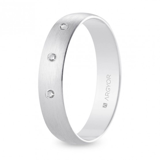 Alianza de boda oro blanco y diamantes media caña 4,5 mm satinada (B45RS3D)