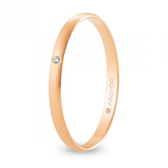 Alianza de boda oro rosa y diamante media caña 2 mm satinada (R20RS1D)