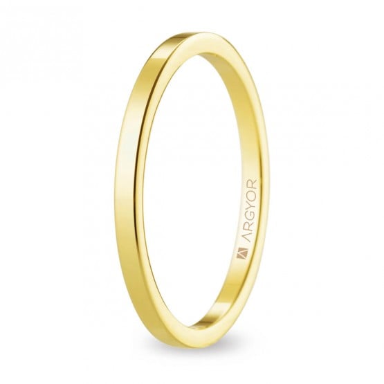 Alianza de boda en oro amarillo de 18 quilates con 1.65mm de anchura y de forma plana gruesa. Se trata de uno de los modelos más finos de los anillos de matrimonio Argyor. Esta alianza de boda será una gran opción para aquellos que buscan una opción sencilla sin renunciar a la elegancia.También está disponible en oro blanco y oro rosa, así como con un diamante.Esta alianza de oro no admite grabado.