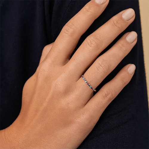Anillo fino de plata de ley y circonitas, tú decides si en color cristal para una opción más neutra o en multicolor para un twist definitivo. Una opción ideal para combinar con los que ya tienes y dar el toque de brillo definitivo a tu mano.