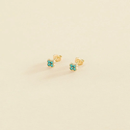 Pendientes de plata de ley bañados con una micra de oro de 18k y circonitas. Tienes la versión más neutra con circonitas blancas o la que aportará un push de color a tus looks con las circonitas turquesa, tú decides.