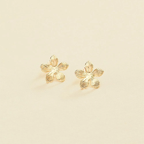 Pendientes acabados en oro de 18k con forma de flor. Un canto al romanticismo en forma de pendientes ponibles y fáciles de combinar. Estrena temporada y pendientes y disfruta con esta joya de textura y volumen tan especiales.