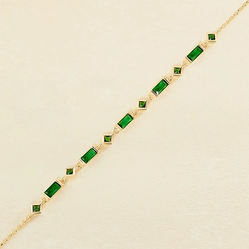 Pulsera ajustable bañada en oro con circonitas blancas, rosa vintage, negras o verde esmeralda alternas en talla baguette y engastadas en forma de rombo. Un diseño original y muy funcional para redondear todos tus outfits. Es muy fácil de poner y quitar gracias a su cierre ajustable. Puedes llevarla combinada con otras o sola, ¡tú decides! Déjate seducir por los nuevos diseños de María Pombo X Agatha y no dejes indiferente a nadie.